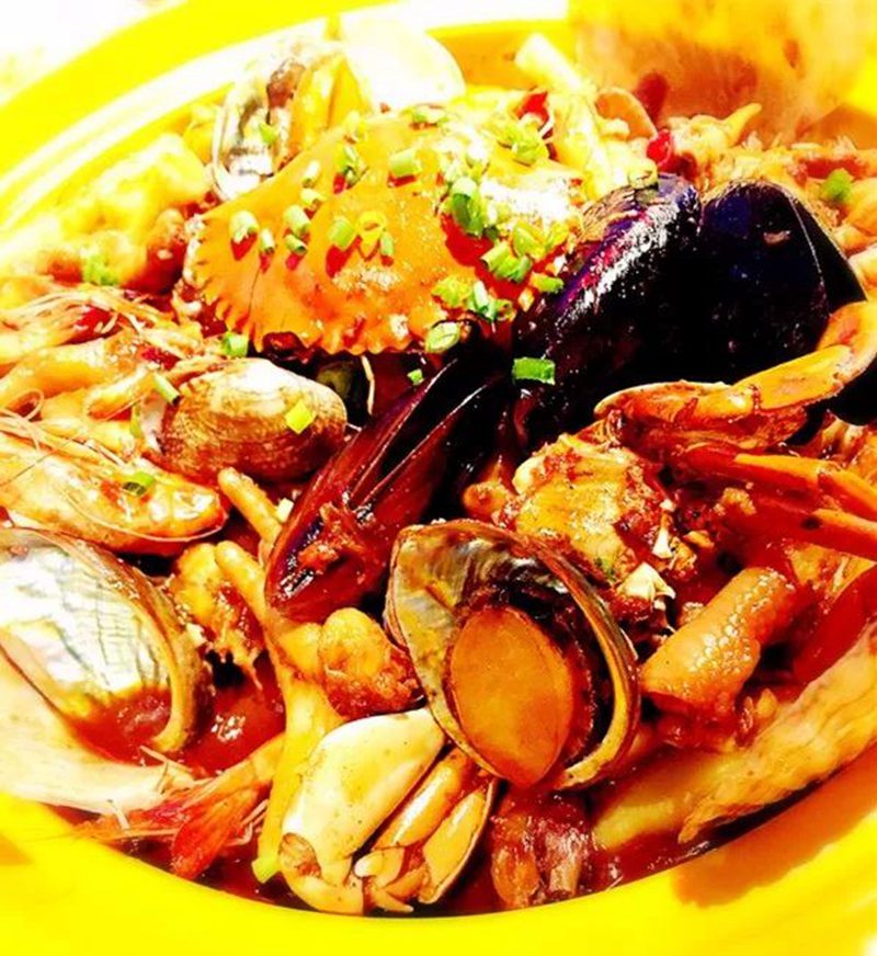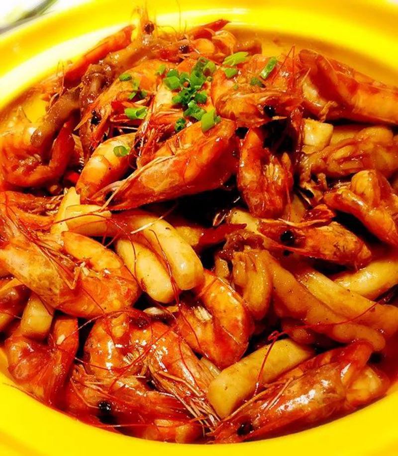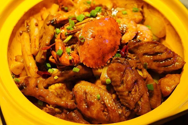 明蝦煲,顧名思義,就是用大蝦烹制的煲,蝦肉晶瑩剔透,吃在嘴里QQ的!蝦煲與蟹煲有著異曲同工之處,那就是里面都有雞爪子,據說雞爪子是為了使煲更加粘稠而特意搭配滴,滿滿的膠原蛋白啊~