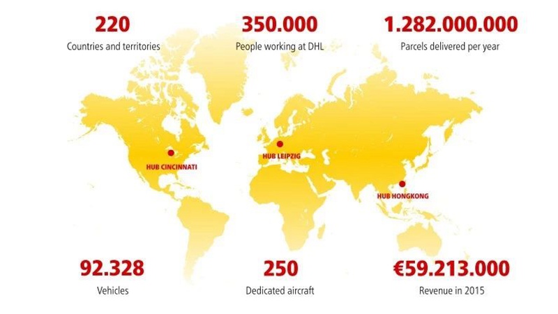 以下是DHL全球的統計數據,展示全球最大的快遞和物流網絡的實力。
