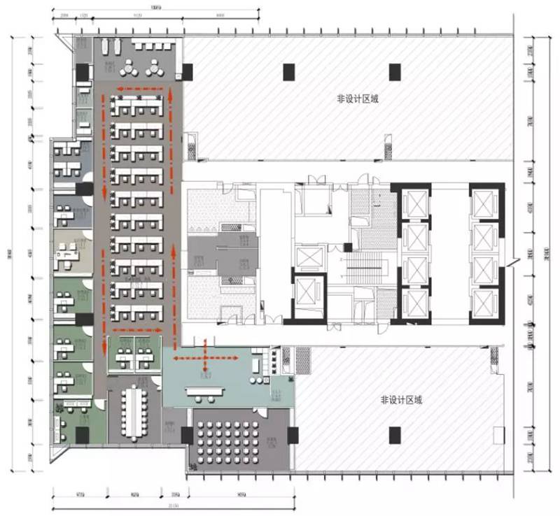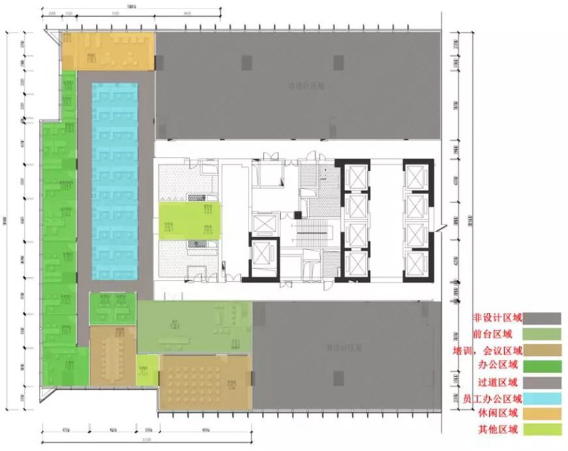 ■ 整個空間根據功能的需求可分為以下塊區,前廳,休閑接待區,會議區,開放辦公區,儲藏設備區,獨立辦公室區域,空間過道等。