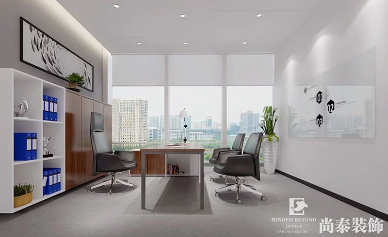 經理辦公室定制了簡約現代的家具,天花做了平頂,整體突出現代簡約的理念。