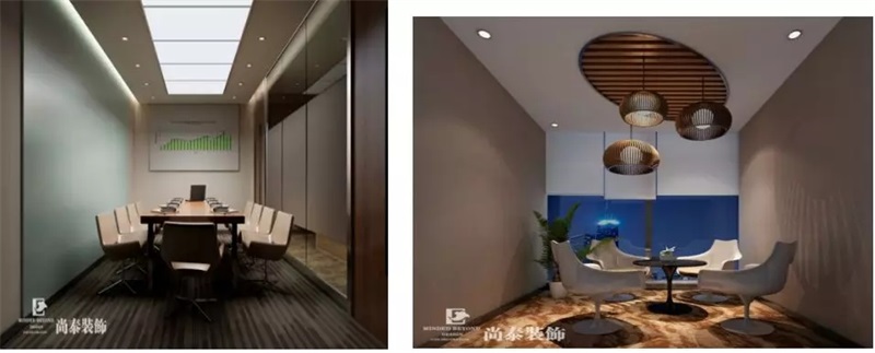 洽談室接待室作為接待客戶的重要場所,首先就是考慮舒適大氣,讓客戶感覺到溫馨跟品質,天花采用造型吊頂,地面采用地毯的形式,墻面以局部造型跟玻璃組合的形式達到效果。