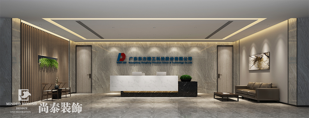 ▲ 分公司位于深圳市南山區,2000㎡現代風格的辦公室由尚泰裝飾集團傾力打造。前廳的地面、天花板以及墻面運用不同的材質,硬朗的線條感和燈光恰到好處的點綴,打造出一個簡潔、明亮舒適、品質而大氣的前廳空間。