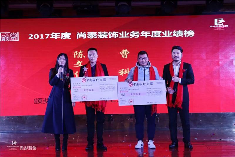 ▼ 陳文佳,曹科榮登2017·尚泰裝飾業務年度業績榜