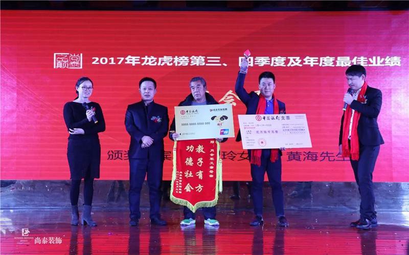 最令人感動的是,尚泰還為年度業績第一的員工設立了“孝敬獎”,尚泰特地邀請其父親參加晚會并上臺領取獎勵——錦旗、銀行卡。尚泰將每個月定時打入“孝敬獎金”。感謝家長的無私付出,才有了尚泰的你們!