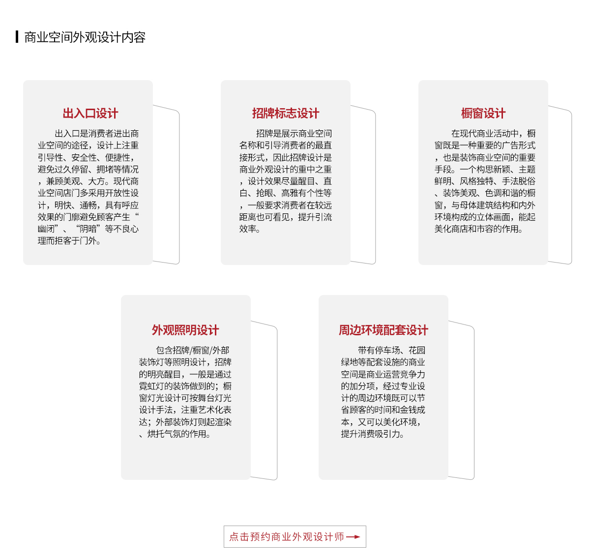 市場研究空間規劃設計心理暗示設計人文呈現設計商業動線設計環境差異設計外觀吸引力設計