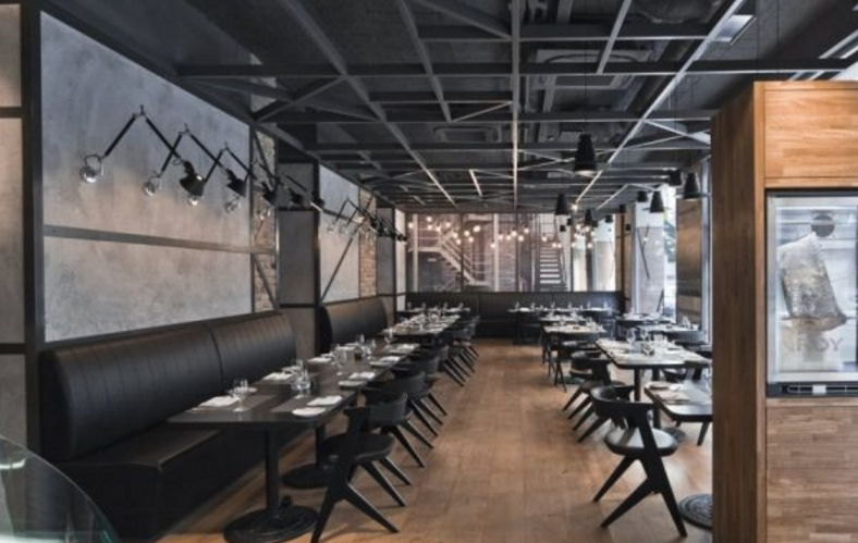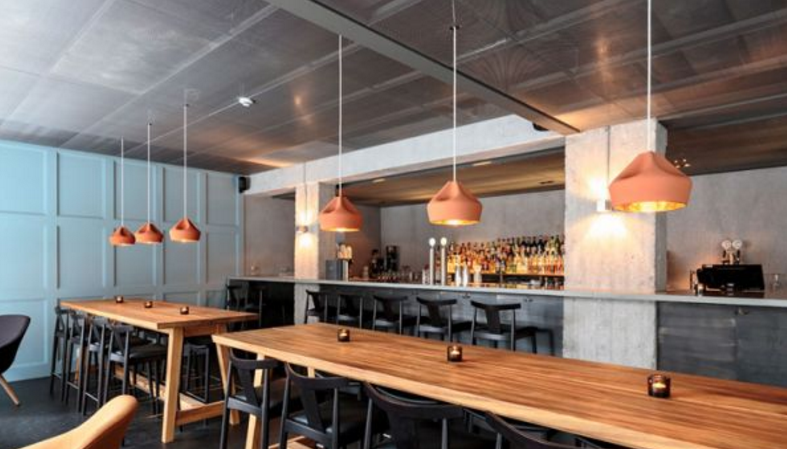 這個地方曾經是一家汽車修理店,它的結構非常開放。它由Graham Baba建筑事務所重新設計,將家庭式展位和滑動玻璃面板打造成更親密的區域。室內設計現在融合了傳統和現代元素。它具有許多由回收材料制成的元素,整體設計不僅時尚而且可持續。