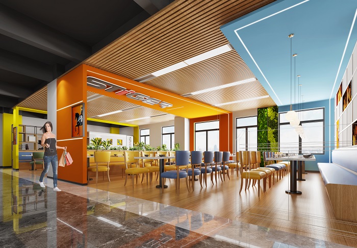 空間流線指的是顧客在餐廳內的移動路徑和布局設計。合理的空間流線可以提高服務效率,也是品牌形象的一部分。休閑餐飲空間設計應該避免擁擠和混亂讓顧客能夠輕松找到座位和服務點。品牌的標志、海報、裝飾物等元素可以放置在合適的位置引導顧客流線,讓顧客更容易感受到品牌的存在和特點。
