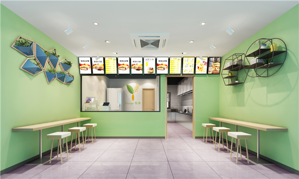 別把設計店鋪想象成特別復雜的事情,像yourger輕食沙拉店面設計裝修這樣,從最簡單的點、線、面角度出發,也能把店面做得很有設計感。